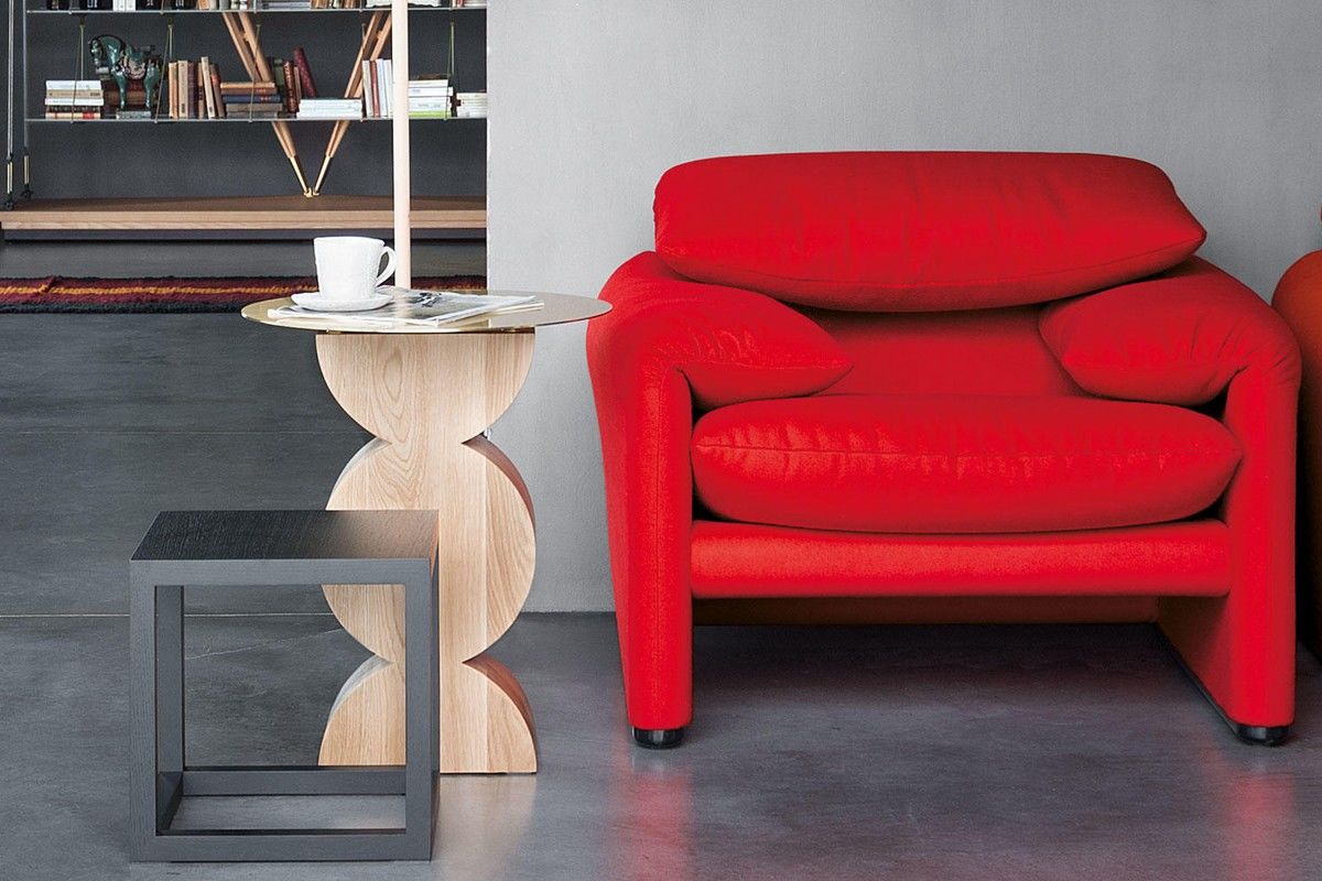 Constantin è un tavolino realizzato con una base in legno massiccio di rovere, finitura a cera. Il piano circolare è in lamina di ottone: due elementi realizzabili in serie che riconducono all’universo del lavoro dello scultore Constantin Brancusi.